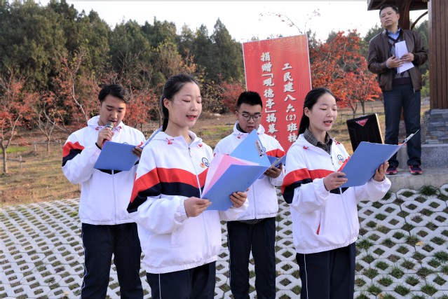 工民建86-2班是我校先进班集体,在上学期间取得过一系列荣誉,该班在校庆30年时捐建了银杏林,这次捐建“观德亭”是该班36位校友在40周年校庆期间再次自发捐资2万元建设的。