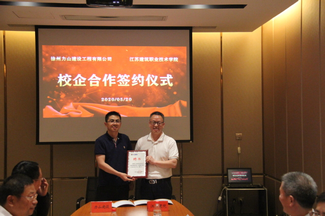 5月20日下午,我院与徐州力山建设工程有限公司校企合作签字仪式在徐州力山建设工程有限公司会议室举行,新宝gg副院长曾凡远教授、力山建设总经理唐园以及公司副总经理孟咸明、李维康、总经理助理陈丕方、崔勇和我校校企合作处处长娄志刚、建筑建造学院院长方桐清教授、副院长程强强博士、王军强教授和马军卫博士等出席签字仪式。