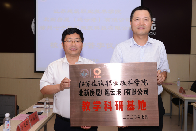 仪式上,建筑建造学院院长方桐清教授与北新房屋(连云港)有限公司、党总支书记孙武与徐州七子新型建筑科技有限公司签订了校企合作协议书。沈士德为两家企业分别颁发了教学科研基地牌匾。根据合作协议,校企双方将在学生订单化培养、毕业生实习及就业、教师挂职锻炼、企业员工常态化培训、装配式建筑房屋新技术研发及推广等诸多方面开展全方位、深度合作。