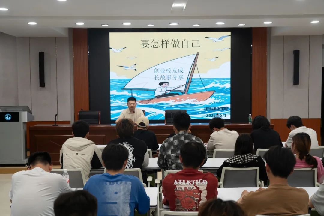 5月7日晚,建筑建造学院在一站式学生社区“厚生学堂”举办鲁班课堂“校友引航•筑梦未来”系列讲座,首场讲座邀请了建筑工程技术专业2009级校友、江苏新东博建筑科技有限公司总经理石洹雨担任主讲嘉宾,以“要怎样做自己”为题进行就业创业经历分享,学院100余名学生参加本次活动。